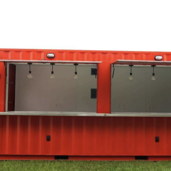 This 20ft Container Cafe is one of our most popular shipping container conversions. It is based on a standard one-trip 20ft x 8ft shipping container and has been converted by our specialist in-house team for use as a food or drinks serving unit.