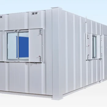 Galvanised steel sheet, coated on both sides, as well as PU-foam heat and sound insulation of the walls and the cement bound chipboard floor plate guarantee an extremely long product life-span. They are fully equipped and immediately ready for use.