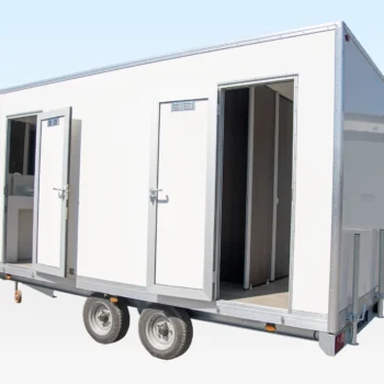 This twin axle towable 2+2 toilet unit is built to an exceptionally high specification and standard, with 14mm white plygloss GRP panels that look fantastic inside and out, whilst being robust and exceptionally easy to clean.
