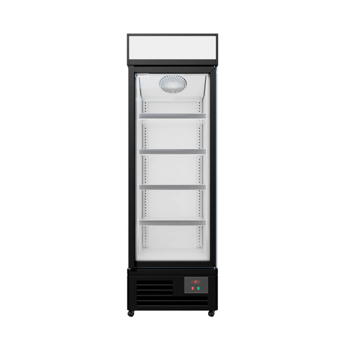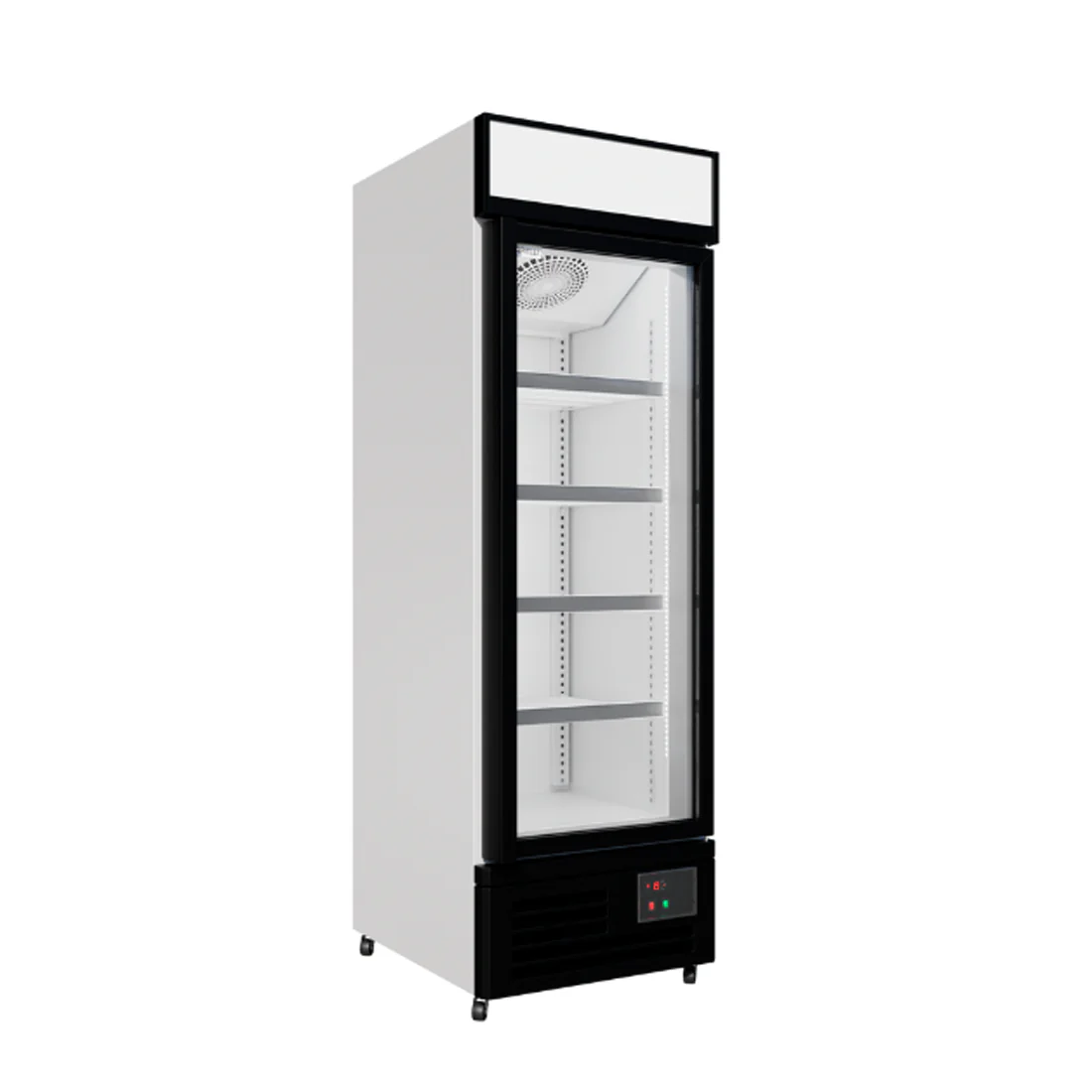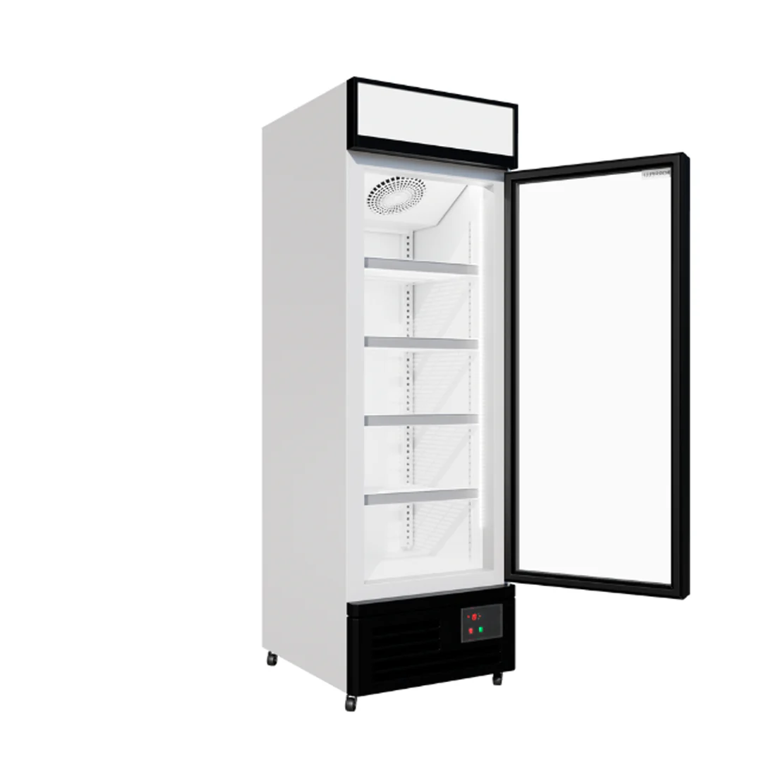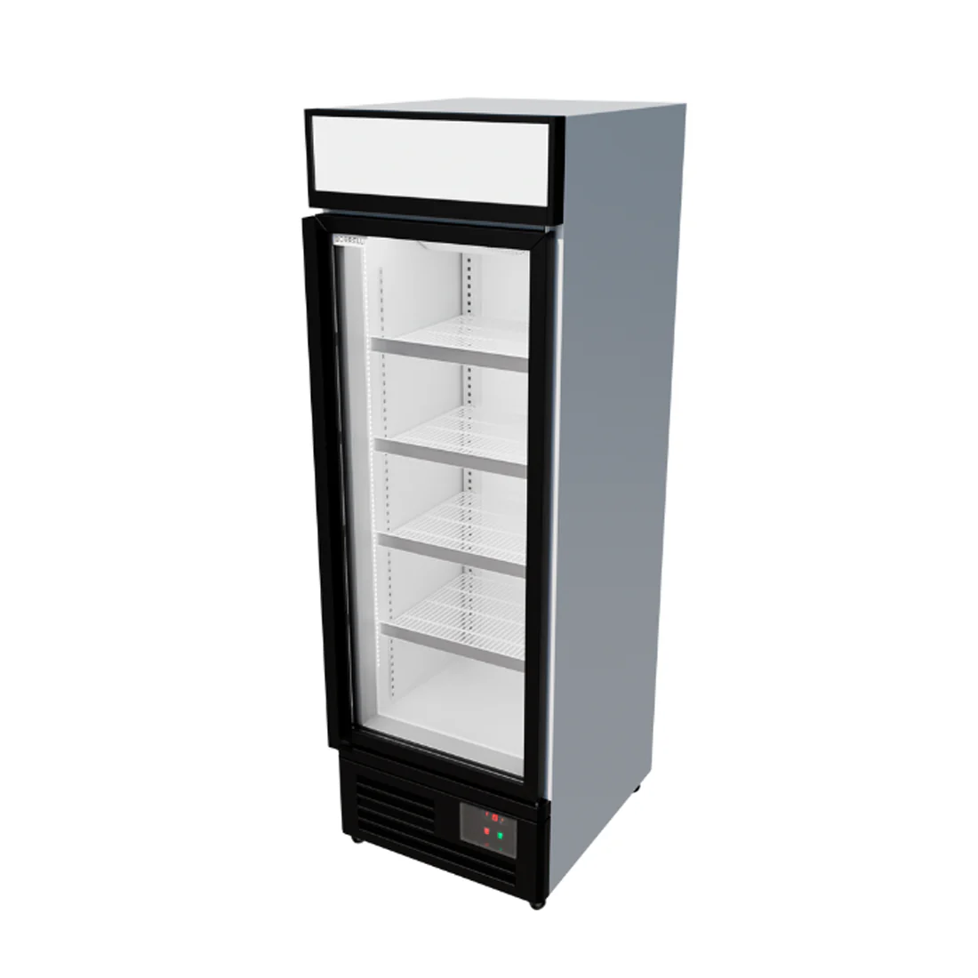 High-quality transparent glass door allows clear product visibility, enhancing presentation and accessibility.